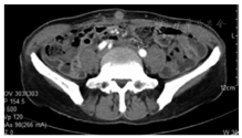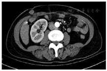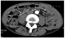 5例均在术前行腹部增强CT和MR排除腹腔及远处转移后行手术切除,术后恢复良好,无切口感染和切口疝发生。腹腔镜胃癌根治术大多采用"五孔法",各个穿刺孔都有可能发生种植转移。肿瘤位于皮下组织2例、肌层1例、脐部穿刺孔处2例(图1,图2,图3)。