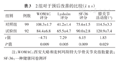 注:WOMAC:西安大略和麦柯玛斯特大学骨关节炎指数量表;SF-36:一种健康问卷测评