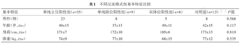 不同反流模式组基本特征比较