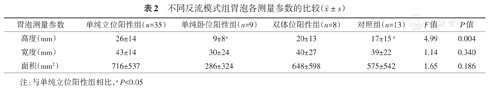 不同反流模式组胃泡各测量参数的比较(