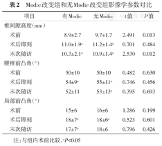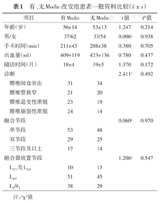 | 项目 | 有Modic | 无Modic | t值 | P值 | |