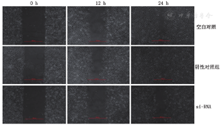 构建STAT3的干扰RNA(siRNA),通过划痕实验显示,在siRNA沉默STAT3后,HUVEC的迁移功能受到抑制(图7)。划痕12 h后,siRNA组的划痕闭合率较空白对照组下调(46.53/22.71),差异有统计学意义(χ2=9.50,P<0.01);划痕24 h后,siRNA组的划痕闭合率较空白对照组下调(86.54/48.18),差异有统计学意义(χ2=10.82,P<0.01)。