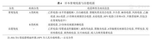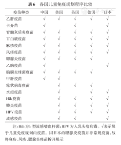 注:Hib为b型流感嗜血杆菌;HPV为人乳头瘤病毒。√表示属于儿童免疫规划内疫苗。因日本的腮腺炎疫苗并非常规疫苗,故将麻疹、风疹、腮腺炎疫苗拆开展示