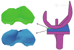 内轴型膝关节假体自上市至今20年来,全球已有超过50多万人使用进行TKA手术,其通过内侧枢轴设计,在内侧膝关节面形成"球-窝"型单一曲率半径的运动模式,符合正常生理的膝关节运动特点,提供了高稳定性和屈膝度,内轴型膝关节置换系统得到了大量膝关节运动学研究结果的支持[5,6]。目前有多家公司推出上市了内轴设计理念的膝关节置换系统,例如瑞士Medacta公司的GMK Spher置换系统,英国MatOrtho公司的SAIPH置换系统、日本Nakashima公司的FINE置换系统、美国Zimmer Biomet公司的MC置换系统等,其中以美国Wright公司(现隶属Microport公司)的AMP置换系统在临床中使用最为广泛。Macheras等[7]报告了325例膝骨关节炎患者接受了AMP TKA手术(347膝),平均随访15.2年,所有患者在KSS评分、WOMAC问卷、SF-12问卷和牛津膝关节评分均显著改善,大多数患者(94%)能够进行适合年龄的活动,末次随访时平均膝关节屈曲120°,17年假体累计存留率为98.8%,结果表明该膝关节设计具有优异的长期临床结果。Bordini等[8]也报道了506例使用AMP假体的10年Kaplan-Meier生存率为96.3%,明显高于其他假体的95.7%。