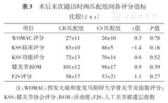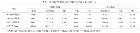 | CR组(47膝) | CS组(1 059膝) | t值 | P值 | CR匹配组(37膝) | CS匹配组(37膝) | t值 | P值 | |