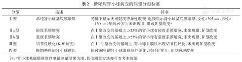 | Ⅳ型 | 晚期糖尿病肾小球硬化 | 超过50%的肾小球出现球性硬化,同时存在Ⅰ~Ⅲ型病理改变 |