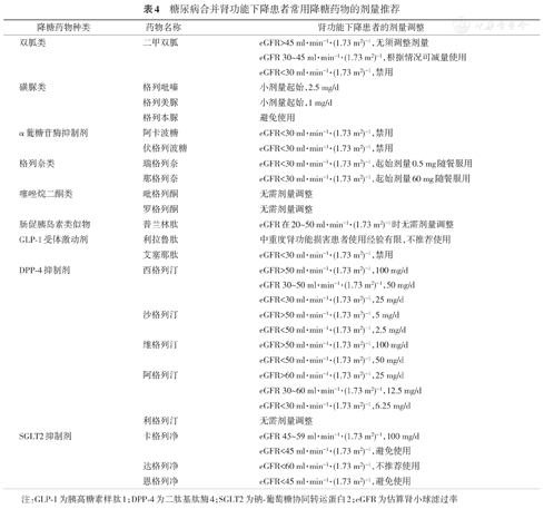糖尿病合并肾功能下降患者常用降糖药物的剂量推荐