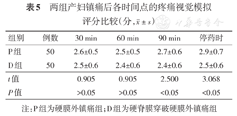 注:P组为硬膜外镇痛组;D组为硬脊膜穿破硬膜外镇痛组