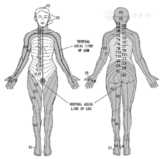 但Foerster在人类身上,证实了Sherrington在猴子皮节分布实验中发现的几个重要观察结果:(1)皮节存在个体差异;(2)除中线外,相邻皮节区存在明显重叠;(3)除C2以外,如果仅切断一个神经根,是不会导致感觉完全丧失的[2,9,10]。