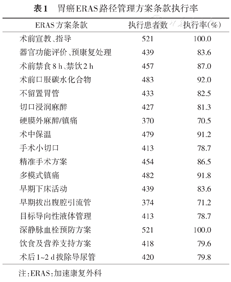 | ERAS方案条款 | 执行患者数 | 执行率(%) |
