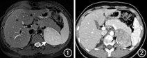 辅助检查:血、尿、便常规及肝肾功能未见异常,电解质:血钠139 mmol/L,血钾3.9 mmol/L,血氯103 mmol/L,二氧化碳结合力(TCO2)24.5 mmol/L,空腹血糖4.6 mmol/L。肾上腺占位功能评估:肾上腺皮质轴:皮质醇节律消失(血皮质醇0∶00 249.23 nmol/L,血皮质醇8∶00 269.38 nmol/L);24 h UFC 149.64 μg,过夜小剂量地塞米松抑制试验不被抑制(服药后血皮质醇280.14 nmol/L);多次查ACTH8∶00<1.1 pmol/L。FSH 4.64 U/L,LH 7.14 U/L,雌二醇251.08 pmol/L,孕酮20.51 nmol/L,睾酮5.59 nmol/L,DHEAS 7.36 μmol/L,17α-OHP 15.24 nmol/L;中剂量地塞米松抑制试验,睾酮、DHEAS、孕酮均不被抑制(具体见表1)。盐皮质激素:肾素活性(PRA)1.85 ng·ml-1·h-1,血管紧张素Ⅱ 80.15 ng/L,醛固酮560.37 pmol/L(180.0~820.0 pmol/L);肾上腺髓质激素:24 h尿儿茶酚胺:去甲肾上腺素15.54 μg(正常参考值:16.69~40.65 μg),肾上腺素2.27 μg(正常参考值:1.74~6.42 μg),多巴胺163.02 μg(正常参考值:120.93~330.59 μg);骨龄相:骨龄18~20岁。子宫双附件超声检查:未见子宫内膜回声,肌层回声均;子宫小(2.6 cm×2.9 cm×1.0 cm),幼稚子宫,左卵巢3.1 cm×1.5 cm,右卵巢2.1 cm×1.1 cm。肾上腺增强CT(图2):左侧肾上腺可见一软组织密度影,大小约50 mm×70 mm,增强扫描可见明显强化,边缘光滑。生长抑素受体显像+腹部CT:左肾上腺软组织占位,生长抑素受体表达轻度不均匀增高。全身骨显像:未见明显异常。正电子发射计算机断层显像(PET/CT):左肾上腺区见一巨大软组织团块,大小5.1 cm×5.3 cm×5.3 cm,平均标准摄取值(SUV)3.5,最高SUV 6.0;左肾上腺区代谢异常增高软组织团块,不能完全除外恶性病变。