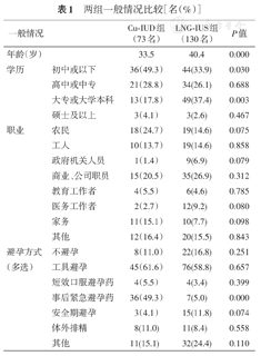 | 一般情况 | Cu-IUD组(73名) | LNG-IUS组(130名) | P值 | |