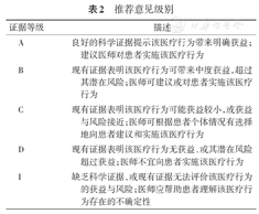 | I | 缺乏科学证据,或现有证据无法评价该医疗行为的获益与风险;医师应帮助患者理解该医疗行为存在的不确定性 |