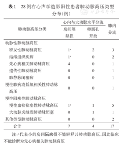 28例右心声学造影阳性患者肺动脉高压类型分布(例)