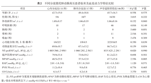 不同分流情况肺动脉高压患者临床及血流动力学特征比较