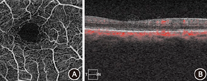 眼科查体:右眼视力无光感,左眼视力1.0;右眼睑无下垂,眼球运动正常,右侧瞳孔散大,直径约6 mm,直接对光反射消失,间接对光反射存在,晶状体不均匀混浊,眼底视网膜血管及视盘色泽正常,未见出血水肿等改变(图1);左眼检查除晶状体轻度混浊外,未见异常。右眼光学相干断层血流成像(OCTA)检查正常(图2),视觉诱发电位(VEP)未引出典型波形,颅脑CT及磁共振检查未见异常,拟诊为右眼视神经损伤(医源性)。患者于当地医院继续给予甲泼尼龙琥珀酸钠、低分子量肝素钠、血塞通、复方樟柳碱等药物治疗,但经半年治疗和随访,右眼视力无改善。