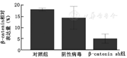 β-catenin是细胞质中一种重要的多功能蛋白,具有介导细胞黏附及参与Wnt信号传导的双重功能[12,13]。正常情况其定位于胞膜内侧,其作用在正常组织中呈被抑制状态。β-catenin作为Wnt信号通路重要的下游信号分子,胞质聚集到一定量后进入细胞核内并可以与TCF/LEF等转录因子结合,进而参与细胞增殖的调控[14],故β-catenin作为Wnt信号通路的核心蛋白,其功能的激活与肿瘤发生发展密切相关[15,16]。