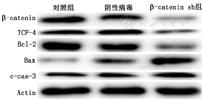 分别构建β-catenin sh和TCF-4△Nsh的真核表达载体,并分别转染肾癌786-O细胞,采用CCK8检测转染后细胞的增殖能力,吖啶橙-溴乙锭(AO-EB)染色法检测转染后细胞死亡情况,Western印迹检测转染组、空转组以及空白组细胞TCF-4、Bcl-2、bax、Caspase-3的表达情况。