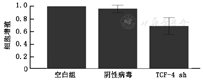 6.786-O肾癌细胞转染TCF-4病毒后,CCK8检测转染成功后细胞株的增殖能力。结果显示实验组细胞的增殖能力(0.66±0.14)较空转组、(1.03±0.08)明显降低,P=0.024(图8)。