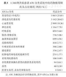 1 340例共病患者ATC分类系统中的药物使用频次及占比情况[例次(%)]