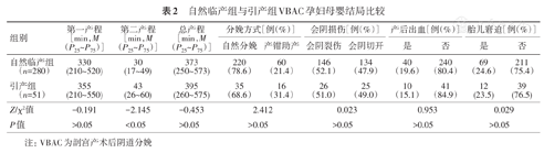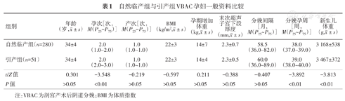 自然临产组与引产组VBAC孕妇一般资料比较