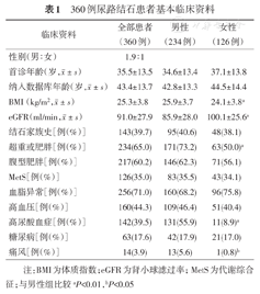 360例尿路结石患者基本临床资料