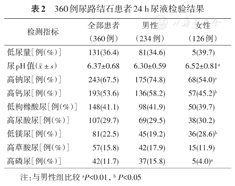 360例尿路结石患者24 h尿液检验结果