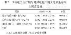 试验组全治疗期与对照组化疗期无进展生存期多因素分析