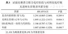 | ER或PR(任一阳性与均阴性) | 1.166 (0.787~1.728) | 0.443 7 |