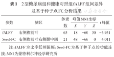 2型糖尿病组和健康对照组fALFF组间差异及基于种子点FC分析结果