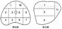 注:1:右前区;2:右中外区;3:右中区;4:右后外侧角区;5:右后区;6:左后区;7:左后外侧角区;8:左中区;9:左中外区;10:左前区;11:前列腺尖部