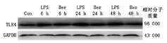 Con:对照组;LPS:脓毒症模型组;Ber:黄连素干预组;TLR4为Toll样受体4;GAPDH为甘油醛-3-磷酸脱氢酶(内参)