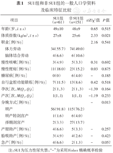 SUI组和非SUI组的一般人口学资料及临床特征比较