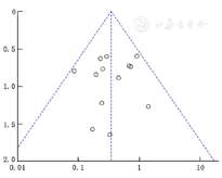 以术后并发症发生率为例,运用RevMan 5.3软件进行漏斗图分析发表偏倚,图像基本左右对称(图7),纳入的15篇研究的NOS评分均不小于7分,表明meta分析结果有较好的真实性,提示不存在明显的发表偏倚。