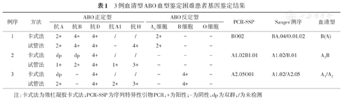 3例血清型ABO血型鉴定困难患者基因鉴定结果