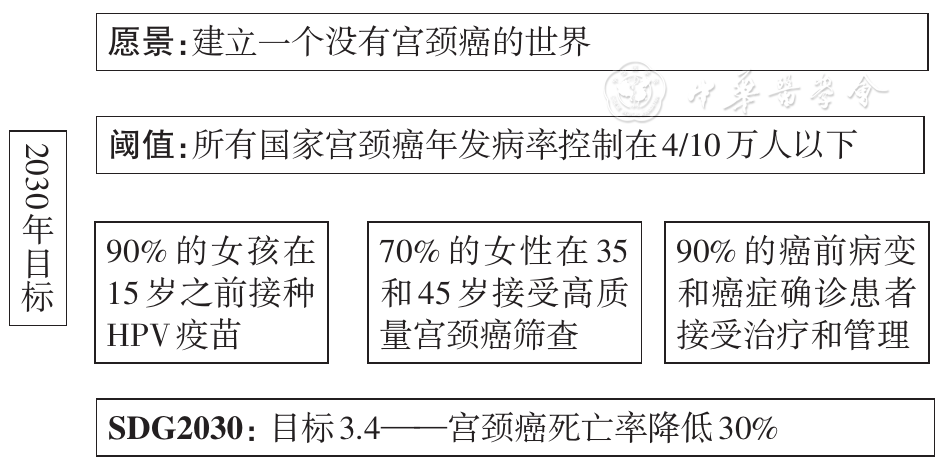 宫颈癌是目前仅有的一种病因明确,三级预防手段完善有效的常见恶性肿瘤。几乎100%的宫颈癌均由高危型别的人乳头瘤病毒(HPV)感染引起,接种HPV疫苗能有效预防相应型别的HPV感染,使宫颈癌等HPV感染相关疾病的发病风险显著下降[1]。宫颈癌筛查和早诊早治技术及其实施方案成熟有效,在全球得到广泛推广应用。早期宫颈癌和宫颈癌前病变的治疗与管理路径完善,具有良好的疗效和预后。尽管如此,宫颈癌仍是全球面临的主要公共卫生问题之一,2018年全球仍有57万女性被诊断为宫颈癌,并有31万女性死于宫颈癌,欠发达国家和地区仍具有较高的宫颈癌负担[2]。基于以上防治可能性和现实差距,世界卫生组织(WHO)近年来正式提出了全球消除宫颈癌的战略目标,决心在21世纪从公共卫生层面解决宫颈癌的问题[3]。