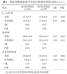 | 项目 | HO低分级组(n=26) | HO高分级组(n=19) | t值 | P值 | |