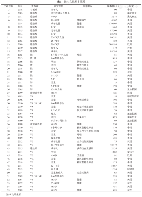| 文献序号 | 年份 | 营养素a | 研究对象 | 健康状况 | 样本量(名) | 国家 |