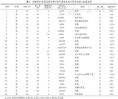 双侧重度-极重度感音神经性耳聋患者基本资料及植入电极情况