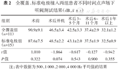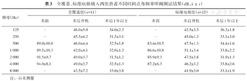 全覆盖、标准电极植入两组患者不同时间点声场下听阈测试结果(dB,)