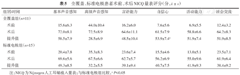 | 组别 | 术前 | 术后开机 | 术后3~5个月 | 术后6~11个月 | 术后1年以上 |