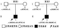 注:红色箭头标记位置为变异位点;家系1患儿(Ⅱ1)c.4455G>A为反向验证结果
