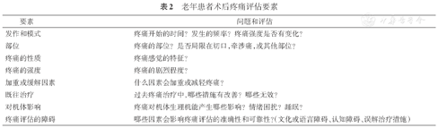 老年患者术后疼痛评估要素