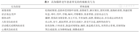 认知障碍老年患者常见的疼痛相关行为