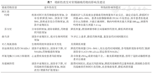 | 镇痛药物类型 | 老年性改变 | 导致的影响和建议 |