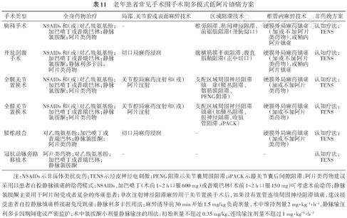 老年患者常见手术围手术期多模式低阿片镇痛方案
