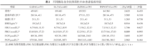 不同胰岛自身抗体阳性T1D患者临床特征
