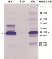 讨论 尿蛋白分为四种基本类型:肾小球性、肾小管性、溢出性、肾后性。肾小球性蛋白尿是肾小球毛细血管壁对大分子物质(如白蛋白)滤过增加所致;肾小管性蛋白尿是由于肾小管重吸收功能障碍,致小分子蛋白(如β2-微球蛋白、免疫球蛋白轻链等)经尿排泄增加所致;溢出性蛋白尿是由于特殊蛋白产生增多(如骨髓瘤导致的免疫球蛋白轻链,又称本-周蛋白),超过肾小管重吸收能力所致经尿排泄增多;肾后性蛋白尿多见于尿道炎症。尿蛋白电泳通过了解尿蛋白的分子量大小,大致推测尿蛋白的类型和来源,如尿白蛋白增多多提示肾小球疾患。本患者尿蛋白电泳(图1中泳道1)可见白蛋白峰位置有浓聚,故首次检验报告提示为“肾小球性”蛋白尿,但尿常规中蛋白为阴性(尿常规中的蛋白检测采用干化学法,对白蛋白非常敏感),两者不符。进一步对尿液行免疫固定电泳检测及24 h尿轻链检测,发现存在大量λ轻链,该表现也与骨髓瘤的诊断吻合(骨髓瘤最常见的尿蛋白成分即为尿轻链[1, 2])。再进一步完善尿蛋白电泳凝胶光密度扫描图谱(图3),根据其电泳迁移率和分子量标记的电泳迁移率仔细比对,最终确定尿中主要蛋白成分为聚合轻链。该结果既与基础疾病吻合,又能够解释尿常规中尿蛋白检测结果与尿蛋白电泳结果矛盾的现象。尿中轻链可形成二聚体和多聚体,因分子量不同,能在尿蛋白电泳的不同位置形成浓聚区域[3]。本患者尿中的多聚体轻链分子量恰好接近白蛋白,故在白蛋白所在区域表现为浓聚区,从而在首次尿蛋白电泳检查时被错误判定为“肾小球性蛋白”。