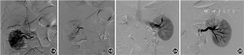 肾动脉栓塞术后并发症包括操作技术相关并发症及栓塞后并发症,常见的为动脉内膜损伤、异位栓塞、栓塞后综合征、肾功能损伤等[11, 12]。本组患者技术成功率为100%,未出现技术相关并发症。栓塞后部分患者出现疼痛、发热等栓塞后综合征,均在短期内恢复。患者术后1周及1个月肌酐及尿素氮水平与术前差异无统计学意义,提示该方法对肾功能无明显影响。