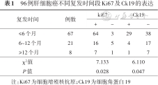 96例肝细胞癌不同复发时间段Ki67及Ck19的表达